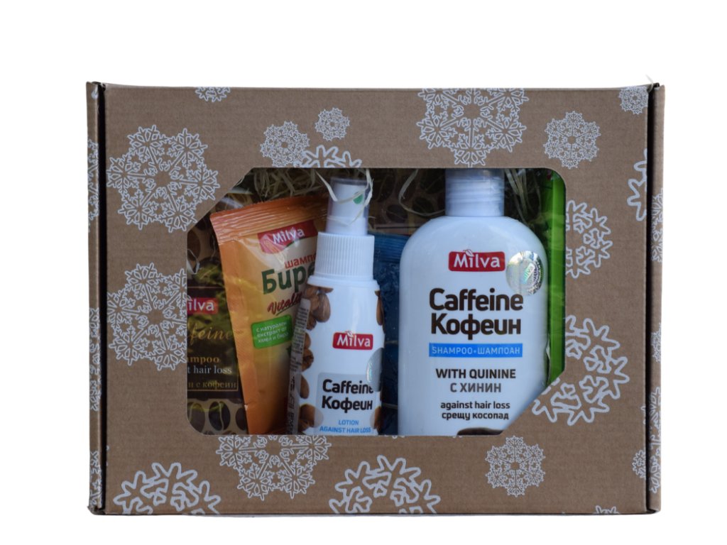 Balíček chinín a kofeín odporúčame používať pri progresívnom vypadávaní vlasov. Kofeín v šampóne podporuje a stimuluje rast vlasov, predlžuje rastový cyklus vlasov a zastavuje účinok dehydrotestosterón, hormónu zodpovedného za vypadávanie vlasov. Chinín spevňuje vlasové folikuly a stimuluje rast zdravých a